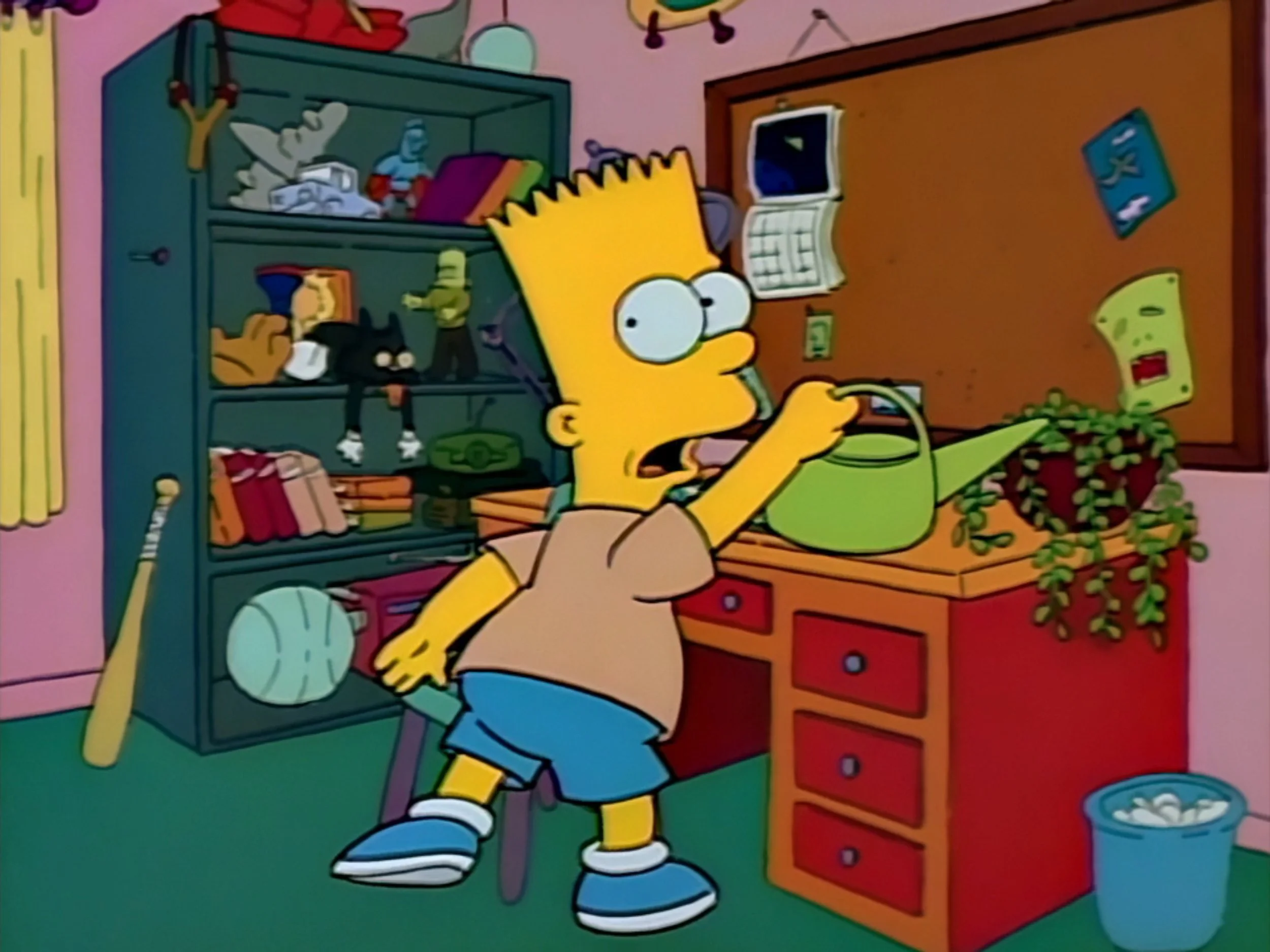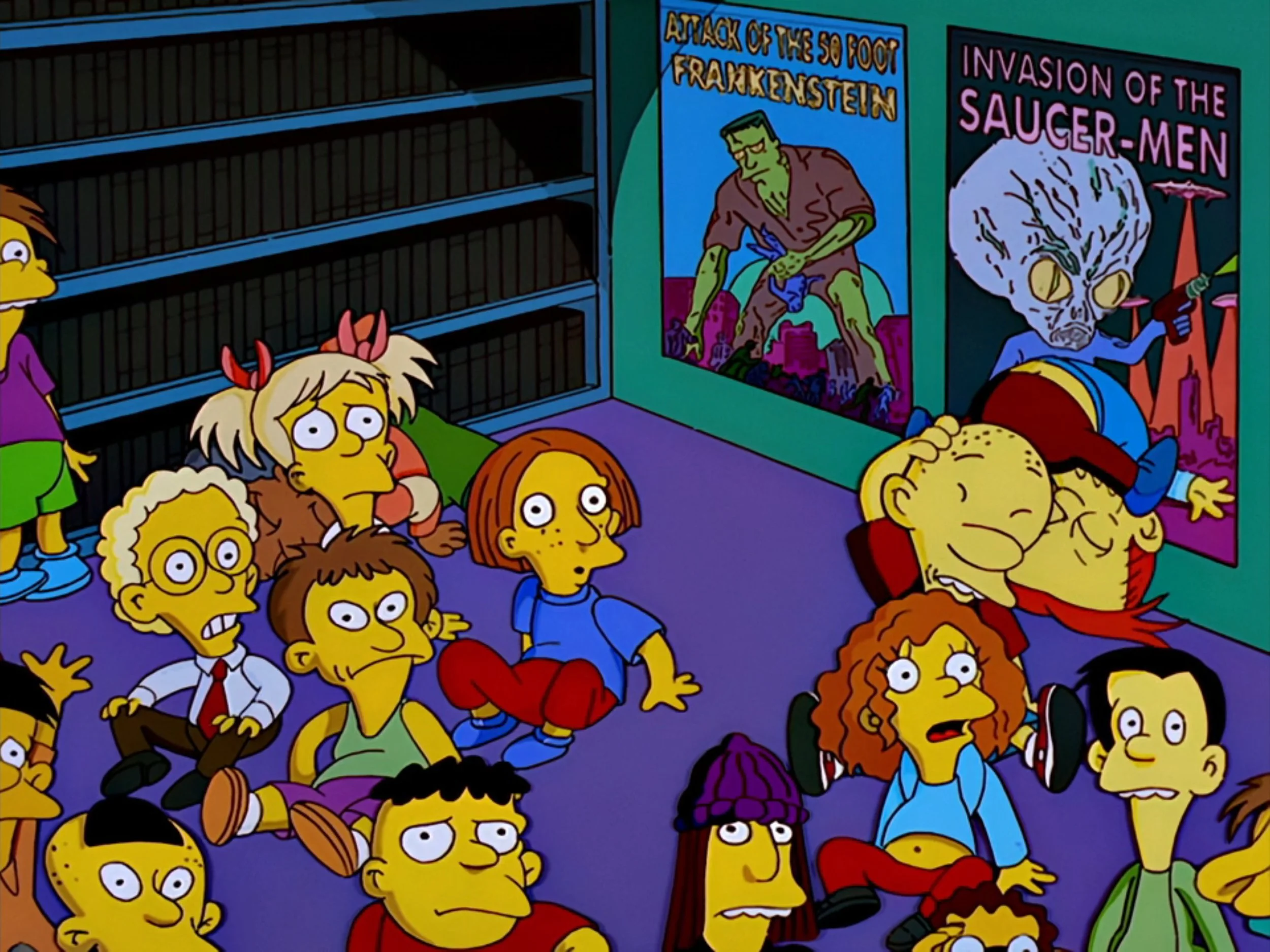 New • Bart Gets an ‘F’ (S2E1): Beginning in season 2, Bart has a doll version of Frankenstein’s monster on the bookshelf behind his desk.