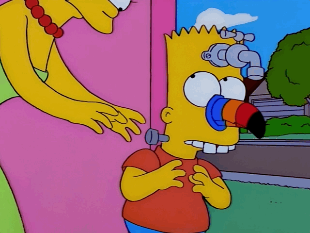 Lost Our Lisa (S9E24): When Bart attaches novelty prosthetics to his face with crazy glue, he attaches electrodes to his neck like Frankenstein’s Monster.