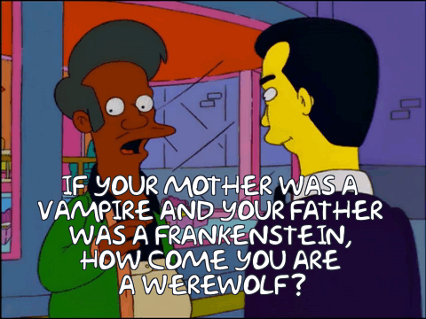 New • Eight Misbehavin’ (S11E7): When Apu meets Butch Patrick, who played Eddie on TV’s The Munsters, he asks, “If your mother was a vampire and your father was a Frankenstein, how come you are a werewolf?”