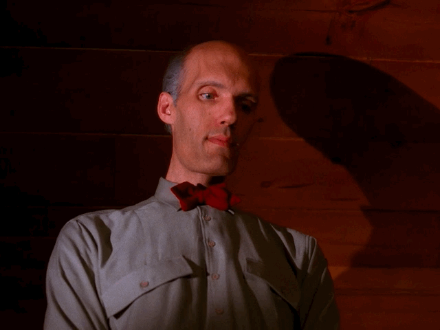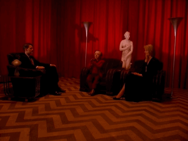While the Red Room and the Man from Another Place are both critical pieces of Twin Peaks mythology that appear in Fire Walk with Me, this scene is mostly modeled on “Episode 2” AKA “Zen, or the Skill to Catch a Killer” (S1E3) of the TV series, which includes the first appearance of the Red Room.