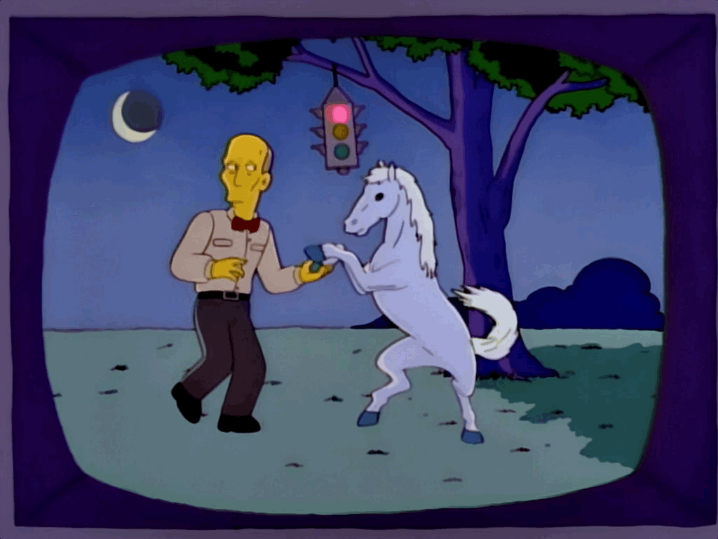 Who Shot Mr. Burns? (Part Two) (S7E1): When Chief Wiggum drinks some warm cream, he falls asleep and has a Dale Cooper-like dream in Twin Peaks’s famous Red Room, including a backwards talking Lisa giving him cryptic clues to solve the mystery.